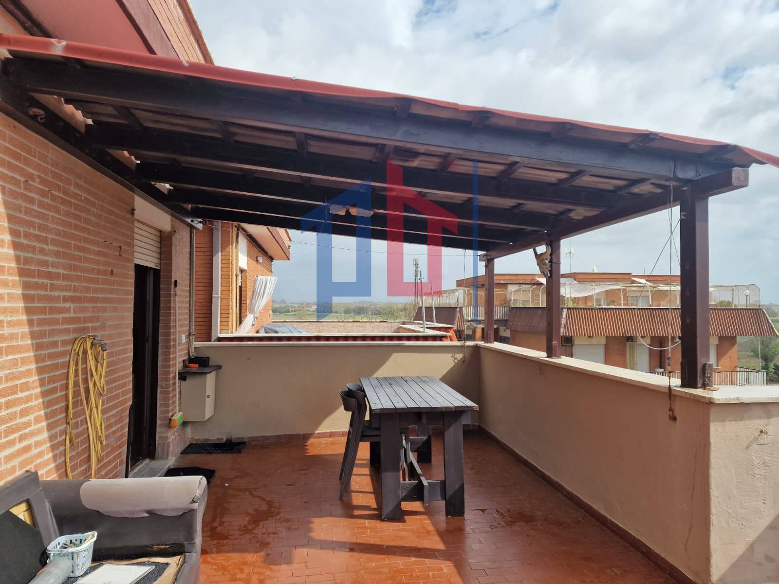 Uscendo al terrazzo invece troviamo una tettoia che permette di poter pranzare o cenare in tranquillità e godere la vista mozzafiato che da questo suggestivo Attico.